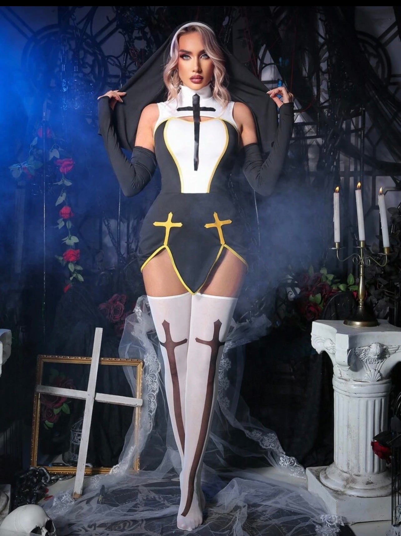 👉🏻 Incluye el set completo de 4 piezas (el vestido, las medias, los guantes y el velo)
