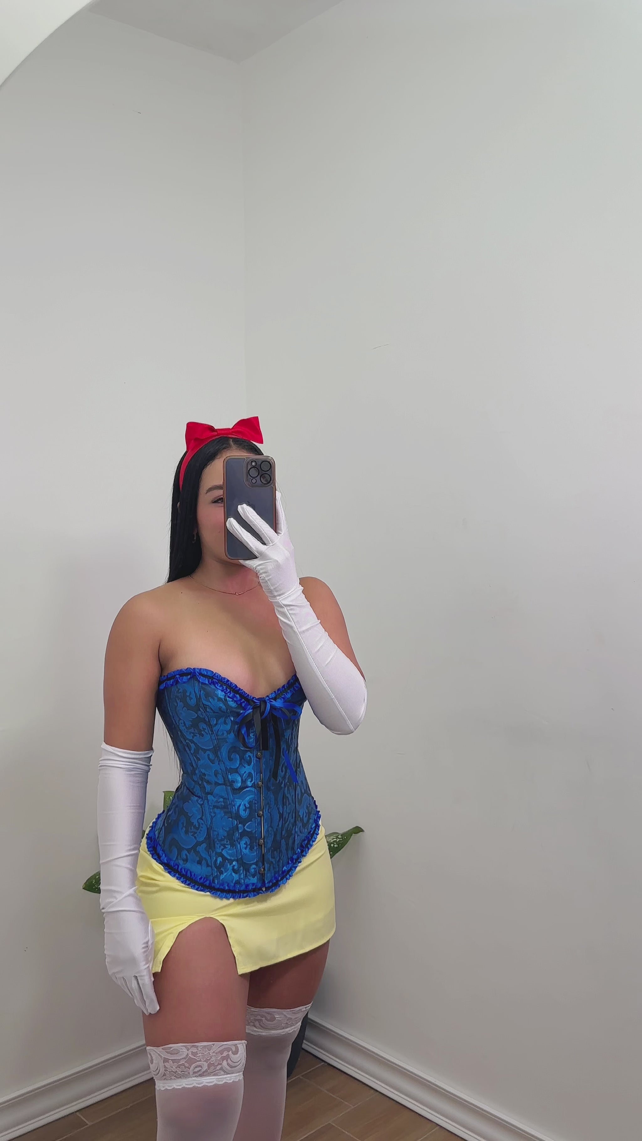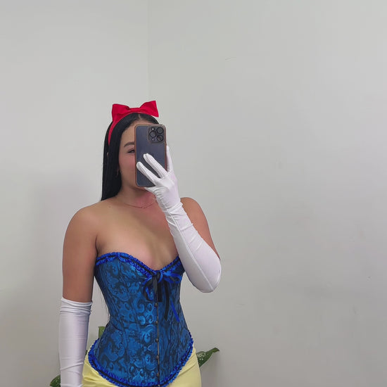 👉🏻 Incluye el set completo de 4 piezas (corsé,falda,guantes y cintillo rojo para el cabello)